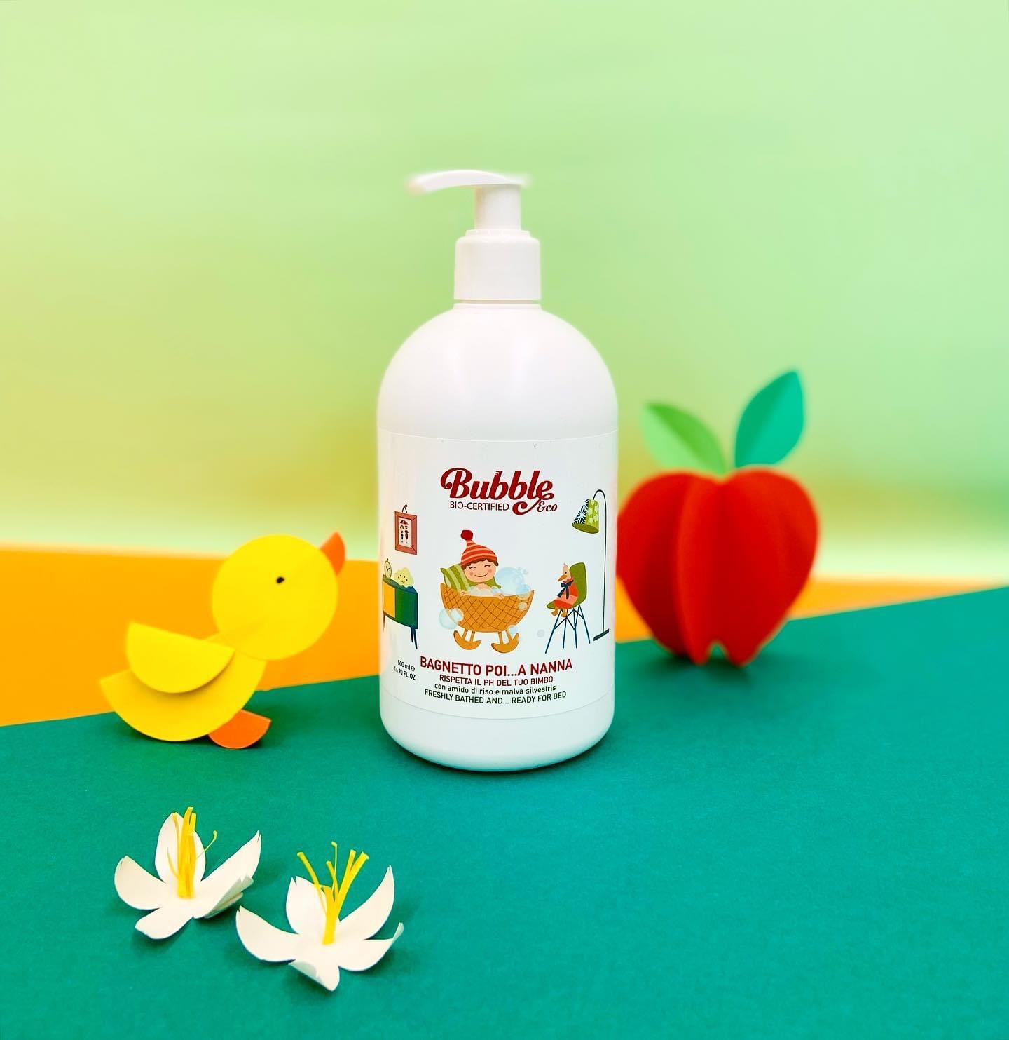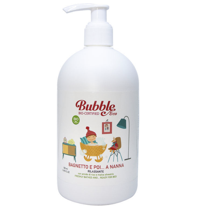 Il bagnetto e poi...a nanna di Bubble & Co, grazie agli estratti di di malva, melissa e camomilla, calma e rilassa i vostri bambini. Ideale da utilizzare prima della nanna per consentire loro il giusto rilassamento per una notte da sogni d'oro.